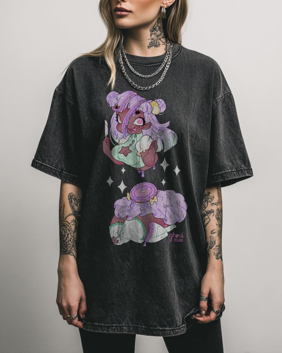 Looking for a unique blend of cute, creepy, and captivating anime style? Dive into a world of whimsical contrasts with this ‘Kawaii Pastel Creepy Cake Girl’ graphic tee. This anime-inspired design features a cute yet subtly eerie girl, possibly adorned with cake elements, rendered in a soft pastel aesthetic. It’s a fascinating blend of adorable…