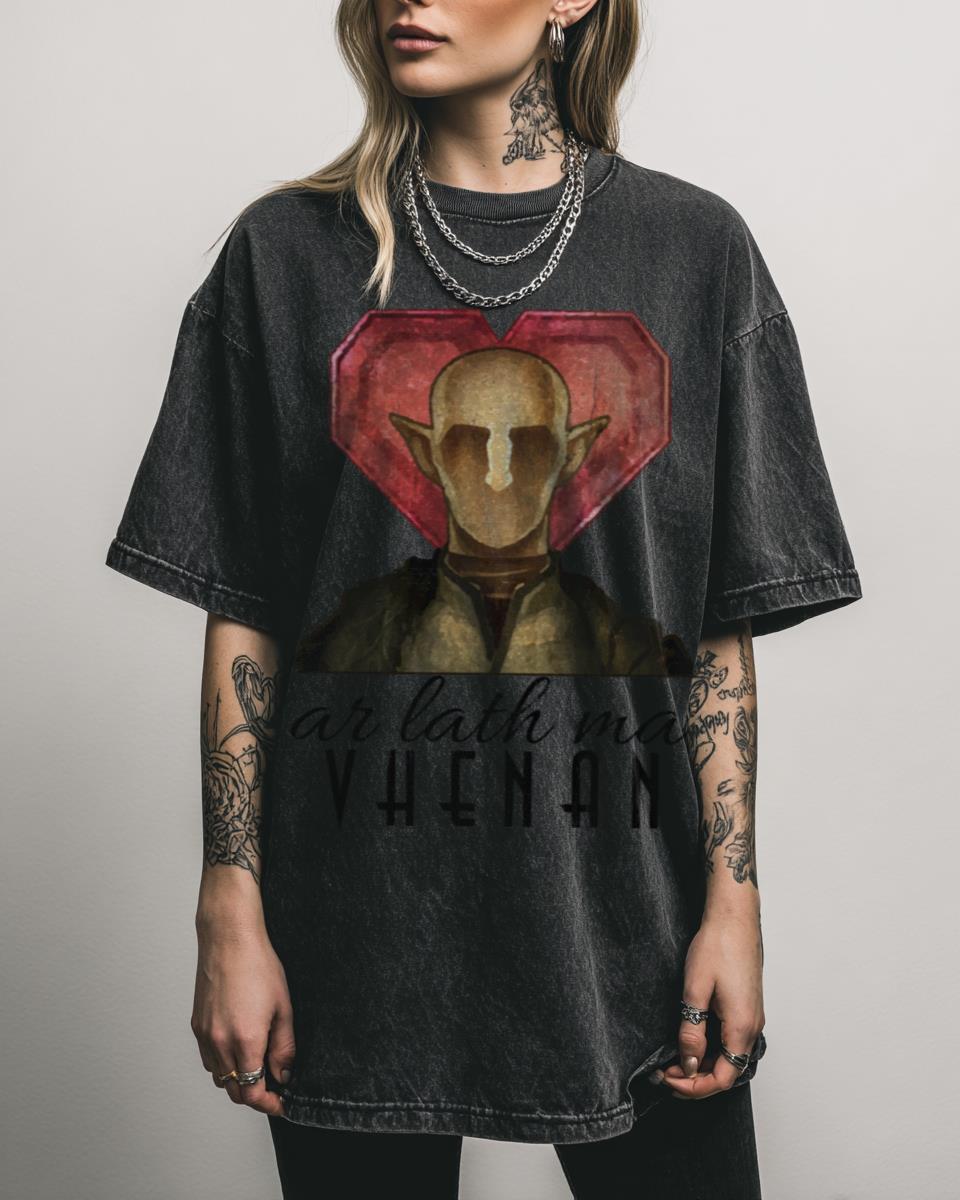 Do you feel the pull of ancient magic and elven romance in Thedas? Declare your love for the Dragon Age universe with this ‘Ar Lath Ma, Vhenan’ graphic t-shirt! Featuring the iconic Elvish phrase, this design is a heartfelt tribute to the deep lore and compelling characters, especially Solas, from Dragon Age: Inquisition. Perfect for…