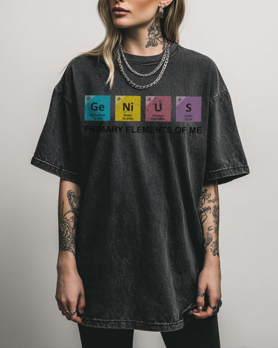 What Makes This Genius Primary Elements of Me IQ T-Shirt So Smart? Showcase your intellectual prowess with this Genius Primary Elements of Me IQ T-shirt. This clever, fan-created design playfully explores the traits of a genius, printed on a black acidwash tee for those who love to think. Key Features of This Intellectual Tee: Clever…