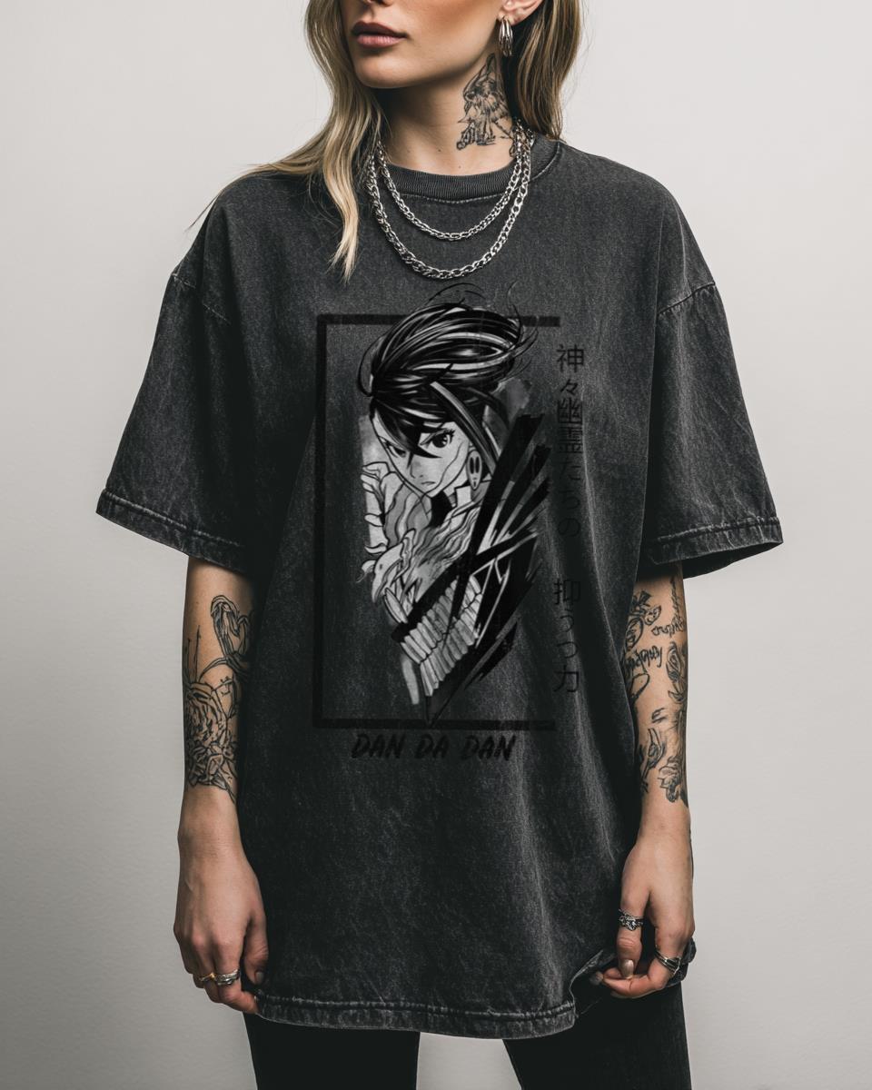 Ready to show off your love for the action-packed Dandadan manga? Dive into the supernatural world of Dandadan with this captivating manga art T-shirt. Featuring a dynamic design inspired by the popular series, it perfectly captures the aesthetic and energy of the beloved characters and storyline. Ideal for fans of Japanese anime and manga culture….
