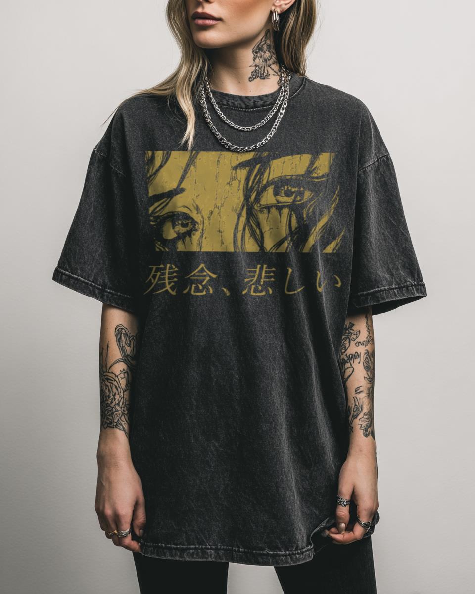 Are you drawn to expressive and emotionally charged anime art? Capture a moment of raw emotion with our ‘Too Bad, So Sad Eyes (Harvest Gold)’ grunge anime design. This striking vector art features crying female eyes, rendered in a distinctive black and white style with a harvest gold accent, echoing the melancholic beauty found in…
