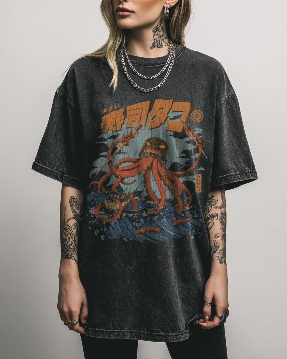 Craving “The Tako Sushi”? Get This Kaiju Octopus Acidwash Tee! Unleash your love for Japanese culture and a touch of kaiju chaos with ‘The Tako Sushi’ Angry Octopus Kaiju Acidwash T-Shirt. This unique, retro-inspired graphic tee features a formidable, angry octopus in the style of a sushi roll, complete with a dramatic wave, perfect for…