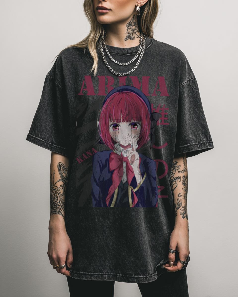 Are you captivated by the talented characters of ‘Oshi No Ko’ like Arima Kana? Show your admiration for the dynamic world of ‘Oshi No Ko’ with this T-shirt featuring Arima Kana. This design captures the essence of the beloved character, making it a perfect piece for fans of the popular anime and manga series. Celebrate…