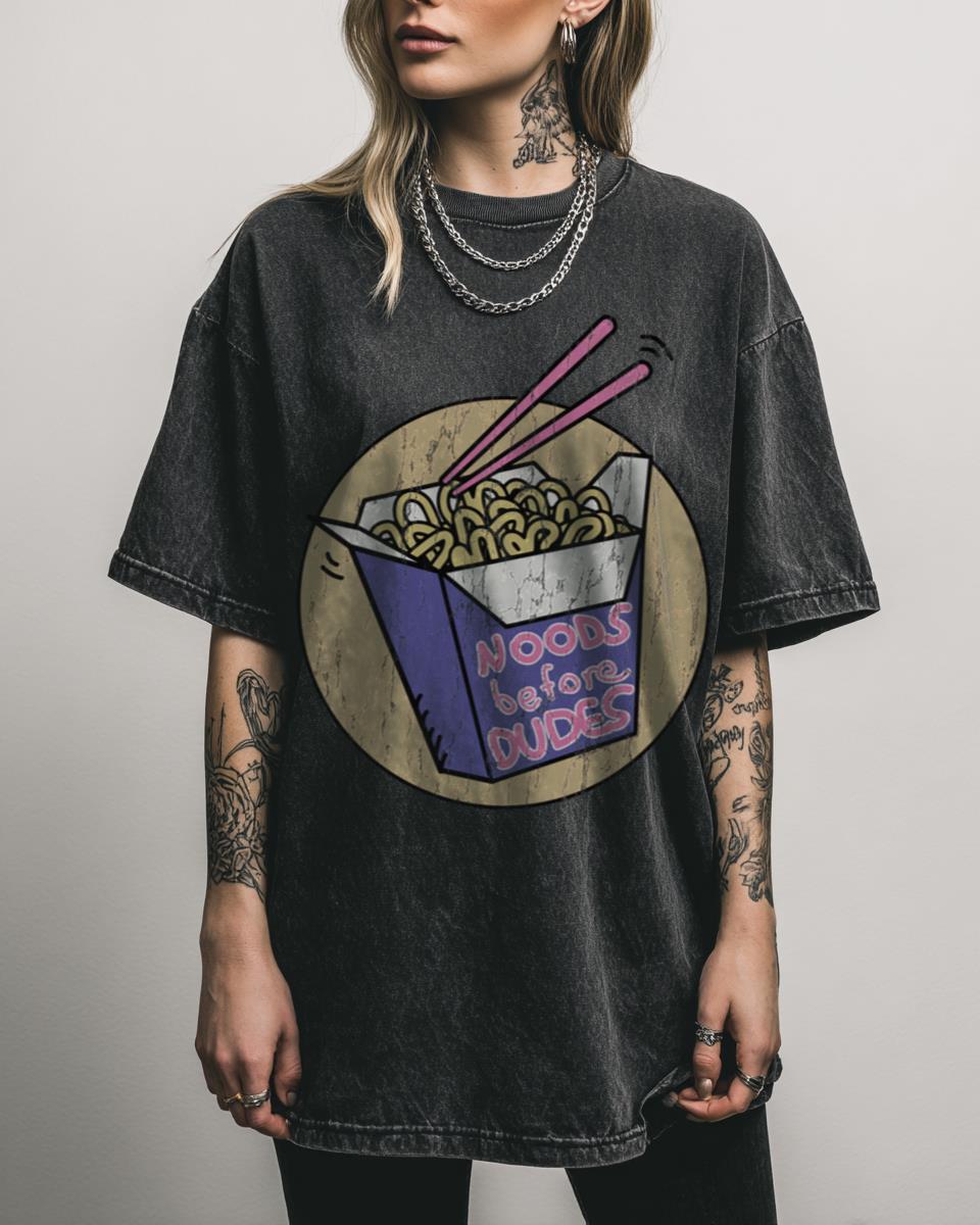 Priorities straight: delicious noodles first! Declare your love for all things noodle-related with this fun ‘Noods Before Dudes’ design. Perfect for ramen enthusiasts, Asian food lovers, and anyone who appreciates a good bowl of delicious noodles over everything else, this graphic is a witty and relatable statement piece. Why You’ll Love This: Features playful printed…