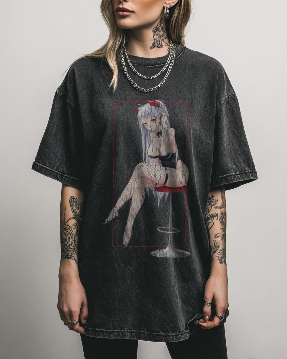Show Your Love with This Prinz Eugen Azur Lane Anime Tee! Embrace your favorite ship girl with this charming Prinz Eugen Azur Lane Anime Tee. Featuring a cute waifu graphic on a stylish black acidwash background, this fan-inspired t-shirt is perfect for any dedicated Azur Lane player or anime enthusiast. Why This Azur Lane Tee…