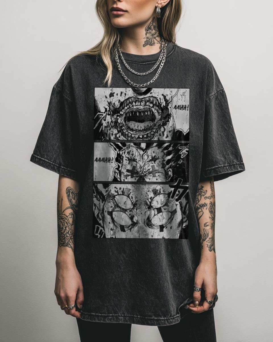 Ready for a dark, twisted aesthetic? Dive into the gritty world of Dorohedoro with this ‘Transformation’ design, featuring the cursed character Risu. This graphic captures the intense, body-horror elements of the manga, perfect for fans who appreciate its unique blend of gore, mystery, and dark fantasy. A bold statement for those who dare to wear…