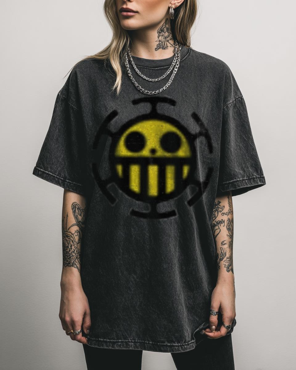 Ready to hoist the flag of the Heart Pirates and sail the Grand Line? Show your allegiance to the ‘Surgeon of Death’ with this striking Trafalgar Law Jolly Roger design from One Piece. Featuring his iconic skull and crossbones emblem, this tee is a must-have for fans of the cunning pirate captain and the epic…