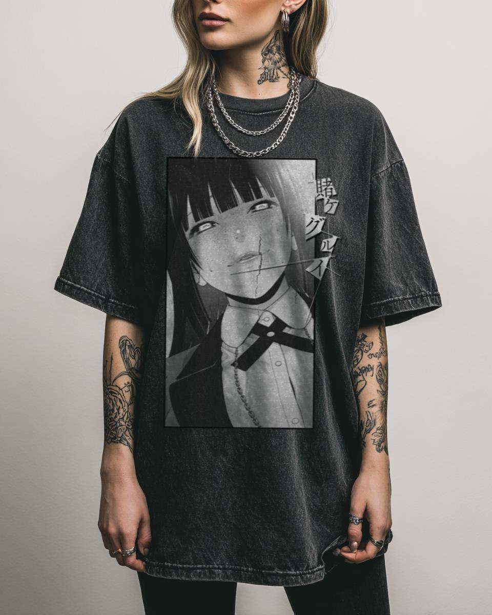 Are you captivated by the thrilling and enigmatic protagonist of Kakegurui, Yumeko Jabami? This striking graphic tee features Yumeko Jabami, the transfer student who loves the thrill of gambling, from the popular anime and manga series Kakegurui. It’s a perfect design for fans who admire her fearless attitude, sharp intellect, and insatiable desire for high-stakes…