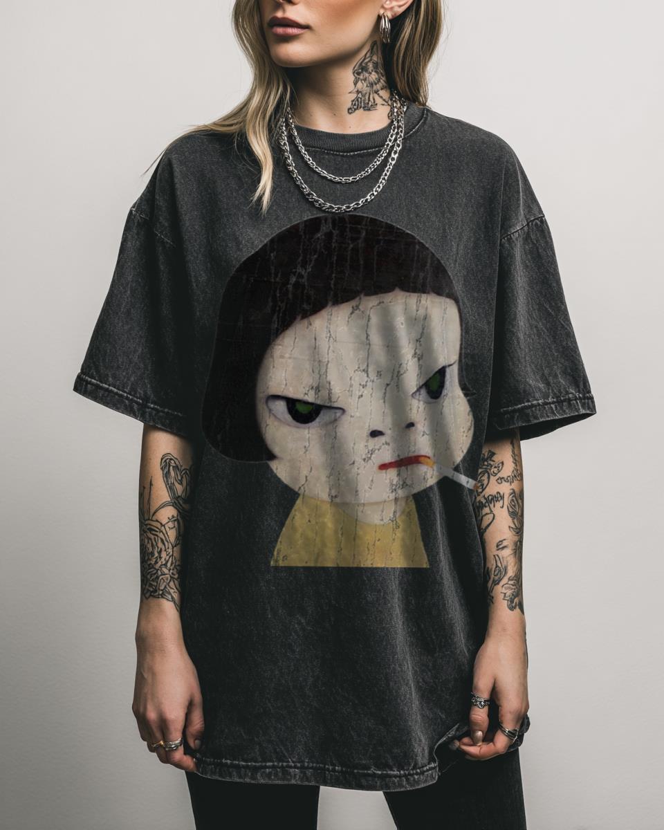 Discover the charming and iconic art of Yoshitomo Nara with this unique design! This T-shirt features a design inspired by Yoshitomo Nara’s signature style, showcasing his beloved cute yet mischievous Japanese girl. It’s a tribute to his distinctive pop art, often seen in renowned exhibitions like those at Lacma, capturing the innocence and subtle rebellion…