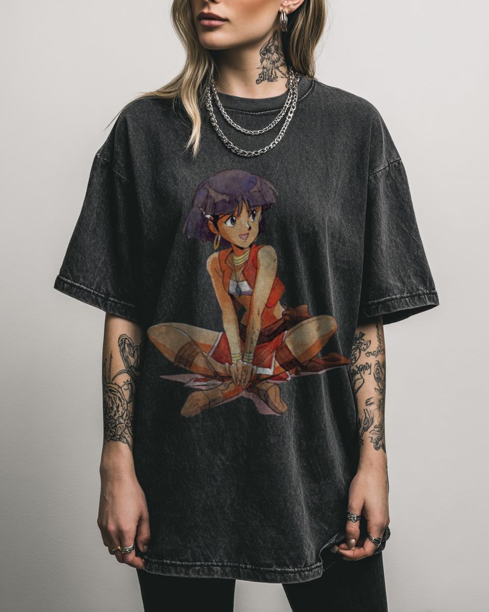 Dive into adventure with Nadia from the classic 90s anime, ‘Nadia: The Secret of Blue Water’? This retro T-shirt features Nadia, the spirited heroine from Hideaki Anno’s iconic sci-fi adventure series. It’s a perfect piece for fans who cherish vintage anime and Jules Verne-inspired storytelling. Why You’ll Love This: Celebrate a groundbreaking 90s anime classic…