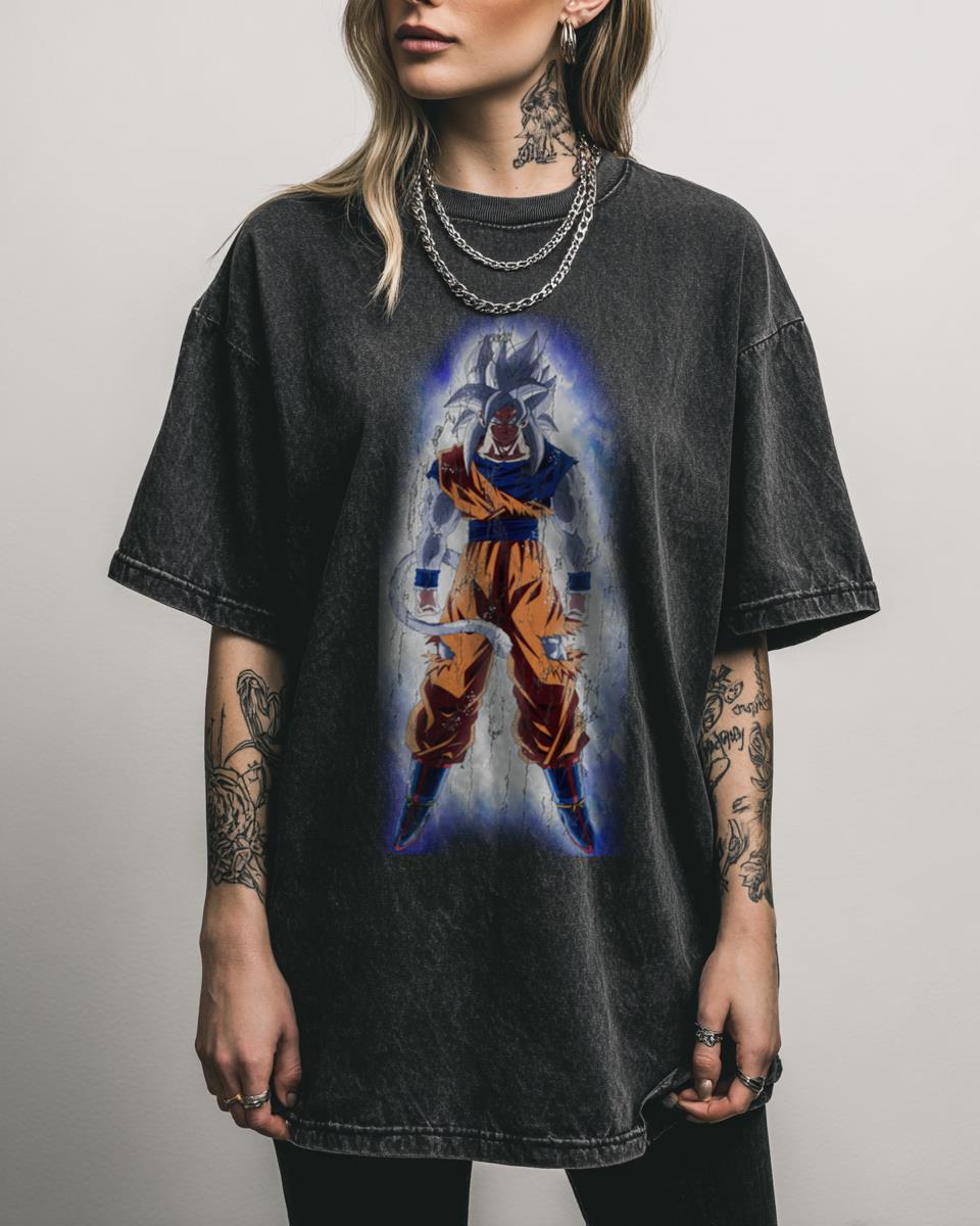 Are you ready to embrace the ultimate power of Goku’s Ultra Instinct form? Unleash the divine power with this ‘Mastered Ultra Instinct Goku’ graphic, a dynamic tribute to Dragon Ball Super’s most epic transformation. Featuring Goku in his complete Migatte No Gokui form, this design captures the intense energy and minimalist aesthetic of his final…