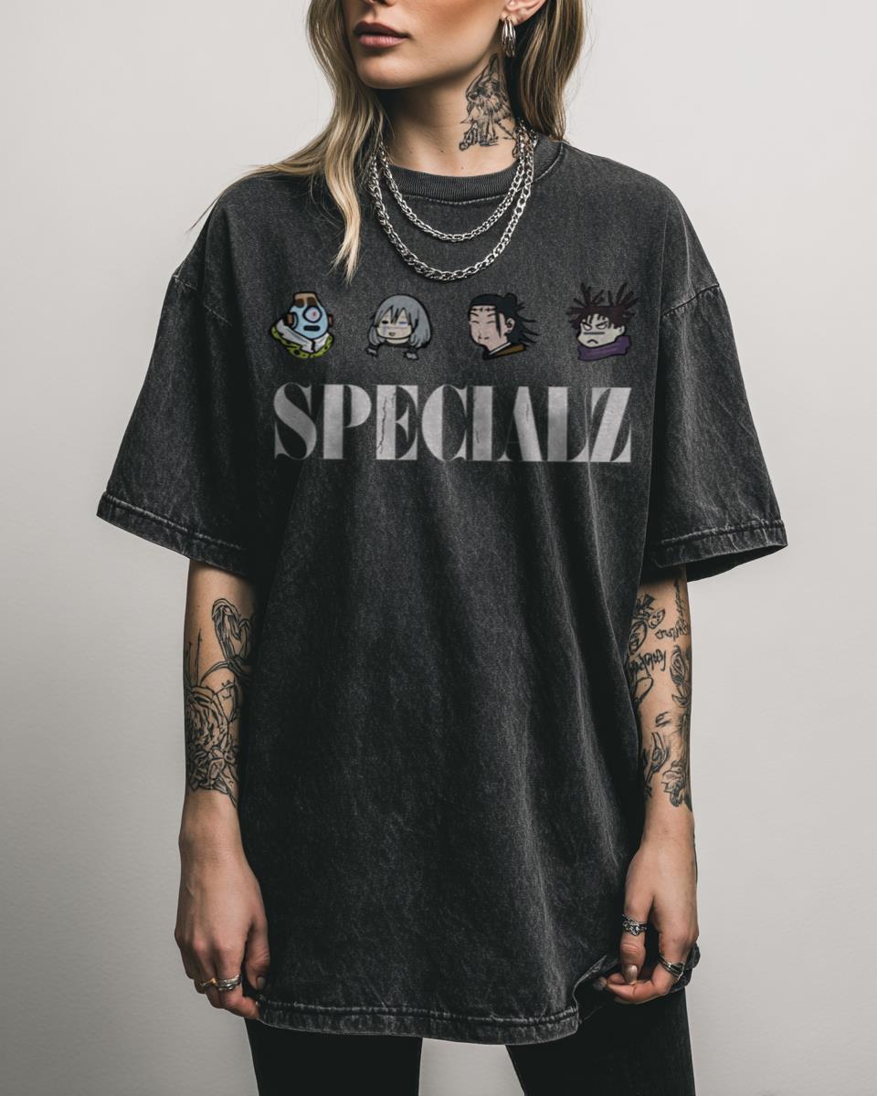 What Makes This “Specialz” Jujutsu Kaisen T-Shirt Stand Out? Embrace the darker side of sorcery with this “Specialz” Jujutsu Kaisen T-shirt, an aesthetic graphic tee featuring iconic characters like Choso, Geto Suguru, Jogo, Kenjaku, and Mahito from JJK Season 2. This black acidwash anime fan art shirt is a must-have for enthusiasts of the popular…