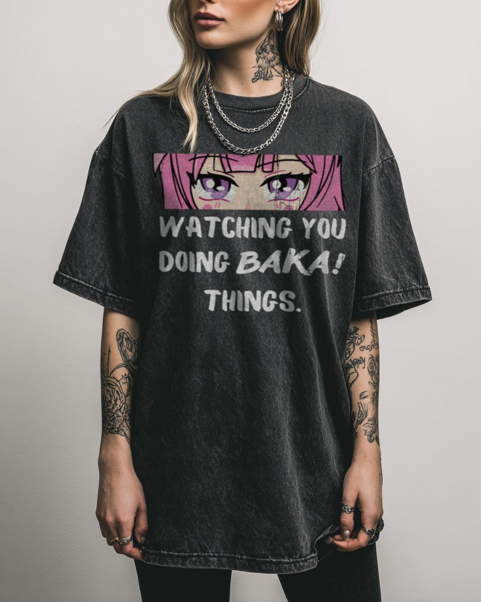 Do you love quirky anime humor and embracing your inner otaku? This amusing ‘Girl watches Baka’ graphic features a charming Japanese anime girl in a classic moe style, perfect for otaku, geeks, and manga enthusiasts. With a playful nod to common anime tropes, this design is a fun way to express your love for Japanese…