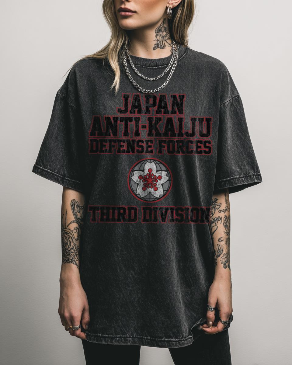 Ready to join the elite forces protecting humanity from colossal threats? Enlist in style with this ‘Japan Anti-Kaiju Defense Forces Third Division’ design, inspired by the thrilling Kaiju No. 8 anime and manga series. This tee proudly displays the emblem of the defense corps, perfect for fans of Kafka Hibino’s epic battles against monstrous Kaiju….