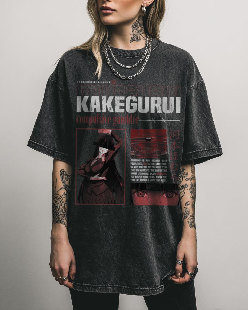 Are you captivated by the high-stakes world of Kakegurui and its iconic characters? Embrace the thrilling aesthetic with our “CRIMSON” Cyberpunk Kakegurui T-shirt! This striking design features Yumeko Jabami, the compulsive gambler, rendered in a cool, cyberpunk-inspired style with a crimson hue. It’s a perfect piece for fans of Japanese anime girls, intense gambling themes,…