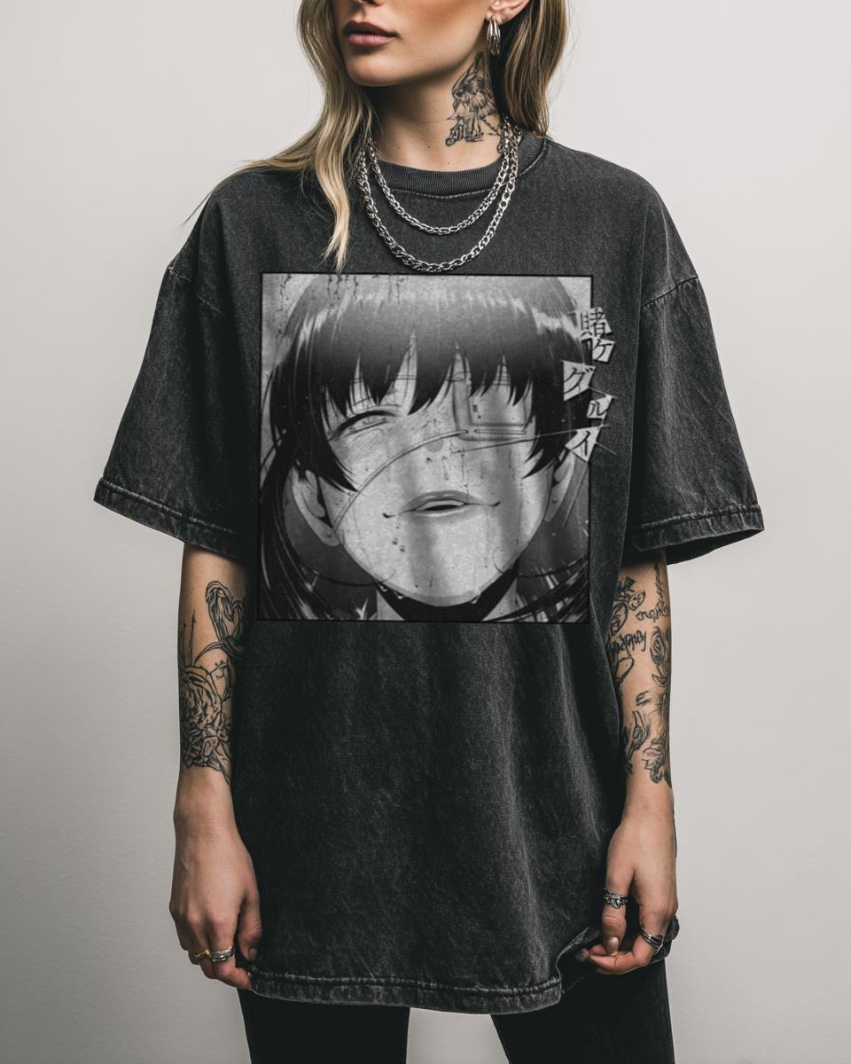 Are you captivated by the thrilling and enigmatic protagonist of Kakegurui, Yumeko Jabami? This striking graphic tee features Yumeko Jabami, the transfer student who loves the thrill of gambling, from the popular anime and manga series Kakegurui. It’s a perfect design for fans who admire her fearless attitude, sharp intellect, and insatiable desire for high-stakes…