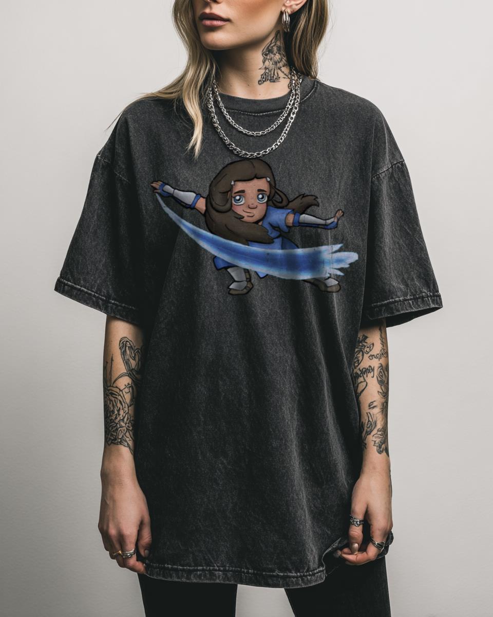 Are you a master of the flowing element, or a loyal fan of the Avatar universe? Channel the power of the Northern Water Tribe with this Kya the Waterbender T-shirt! This design pays tribute to Katara’s daughter and Aang’s child, a powerful and compassionate waterbending master from The Legend of Korra. Perfect for Avatar fans…