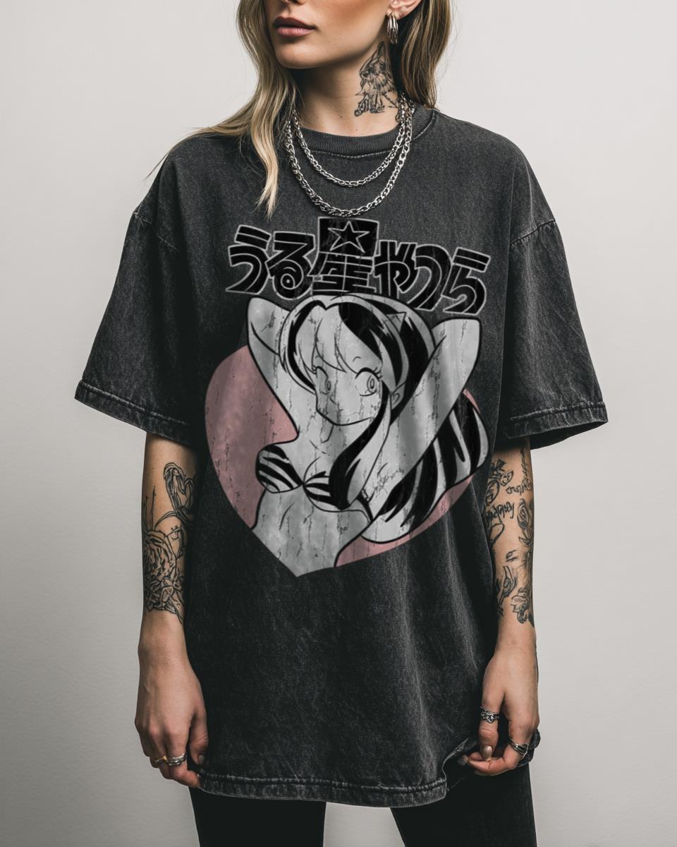 Ready to bring some alien charm and retro kawaii to your wardrobe? Celebrate the iconic Lum Invader with this vibrant “Urusei Yatsura” graphic tee, a tribute to the beloved 80s anime and manga by Rumiko Takahashi. This design captures the cute and mischievous spirit of Lum, making it a perfect piece for fans of classic…