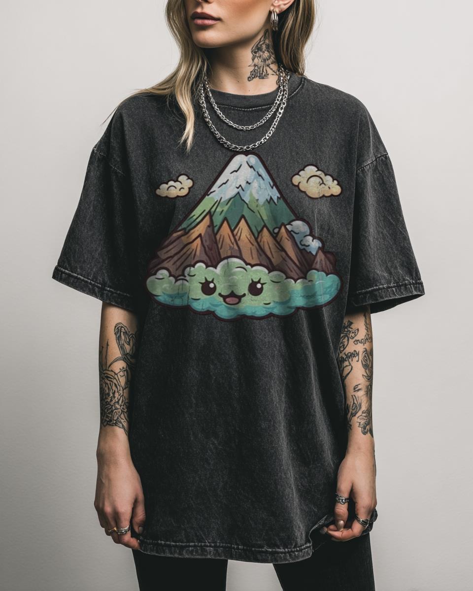 Looking for a touch of whimsy and magic in your everyday wear? Drift into a fantastical world with this adorable ‘Smile Cloud Mountain’ T-shirt. Featuring a happy, smiling cloud floating above a snowy mountain in a magical teal sky, this kawaii design is perfect for children and adults who love cute fantasy art. Why You’ll…