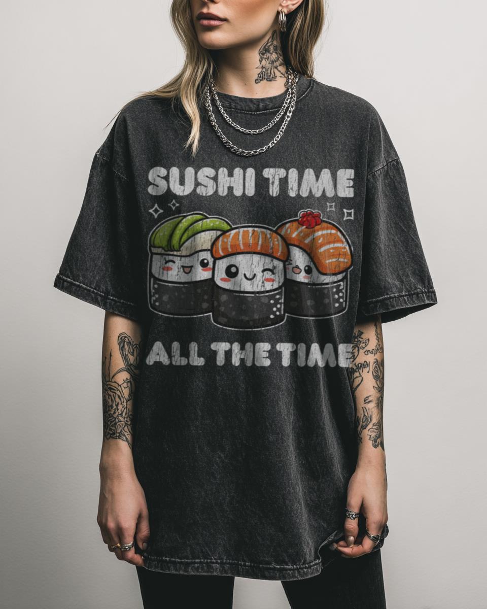 Why This Funny Kawaii Sushi Time Tee is a Must-Have for Foodies? Declare your endless love for Japanese cuisine with this funny kawaii ‘Sushi Time All The Time’ graphic tee! Featuring adorable sushi art, this 100% cotton black acidwash shirt is the perfect way for any sushi enthusiast to express their passion in a cute…