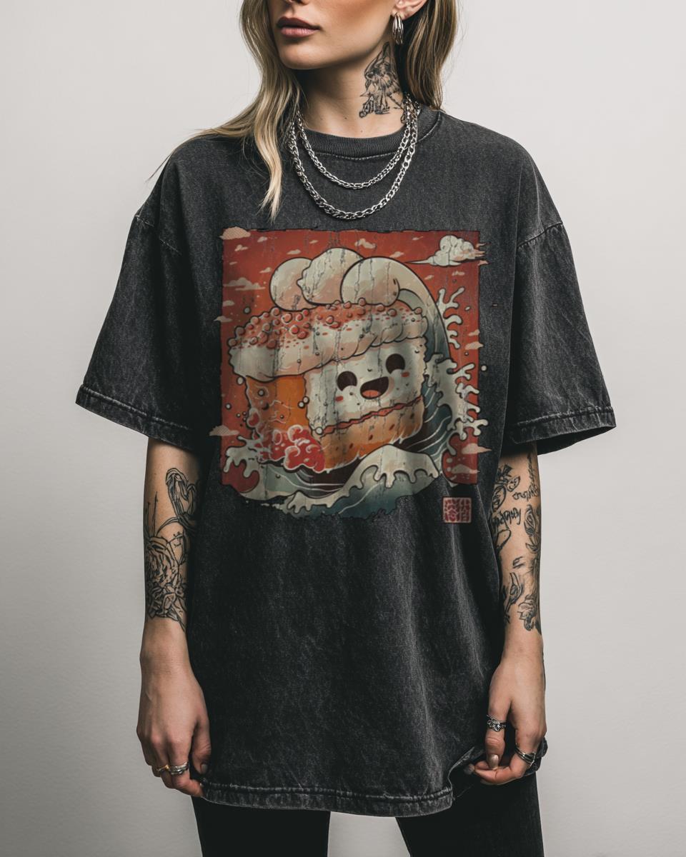 Do you have a sweet tooth for adorable food art? Indulge in the delightful world of Japanese cuisine with this ‘Kawaii Japanese style Food Illustration’ graphic tee. This design features charming, anthropomorphic food characters in a cute anime style, perfect for foodies, anime fans, and anyone who loves cute and colorful illustrations. Why You’ll Love…