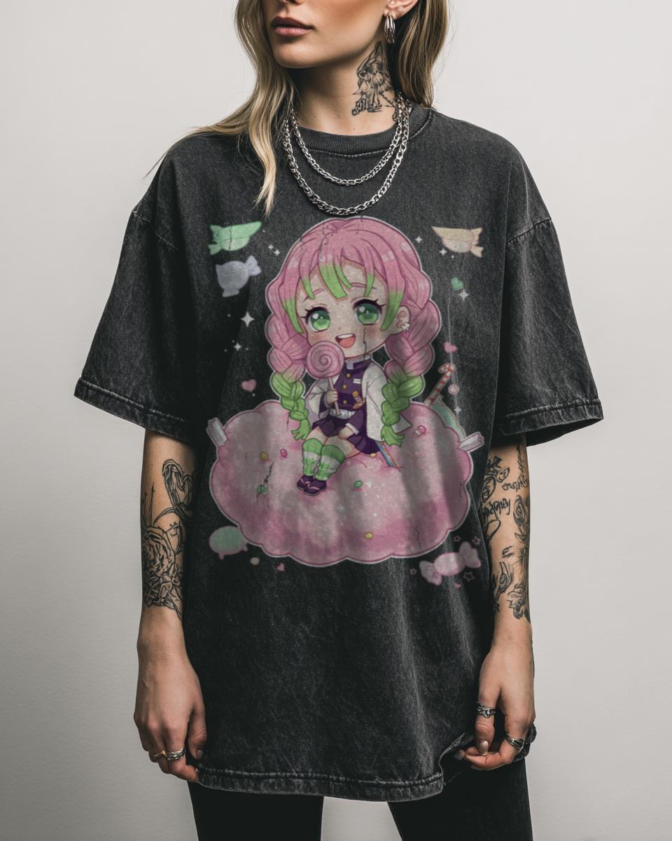 Are you a fan of the hottest shonen anime and manga series? Show your love for popular Japanese animation with this aesthetic anime graphic tee, blending elements of Demon Slayer (Kimetsu No Yaiba) and Jujutsu Kaisen. Featuring a cute, kawaii style with a touch of vaporwave, this design is perfect for otaku who enjoy dynamic…