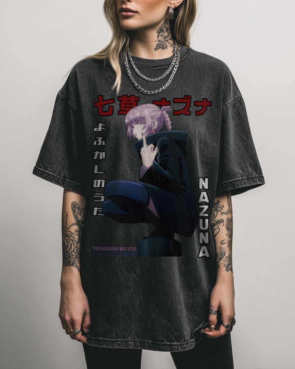 What Makes This Call of the Night Nazuna T-Shirt a Fan Essential? Embrace the nocturnal allure of “Yofukashi no Uta” with this captivating Call of the Night Nazuna T-Shirt, featuring a fan-inspired graphic. This acidwash tee celebrates the charming vampire Nazuna Nanakusa and the series’ unique aesthetic, making it perfect for any anime and manga…