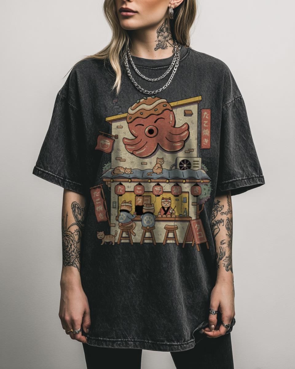 Transport yourself to the vibrant street food scene of Showa Era Japan? Step into the ‘Takoyaki House’ with this captivating design by Vincent Trinidad. Featuring a charming octopus chef and iconic Japanese street food, this retro-inspired tee captures the nostalgic essence of Kyoto, Osaka, and Tokyo’s culinary delights. Why This Takoyaki House Tee is a…