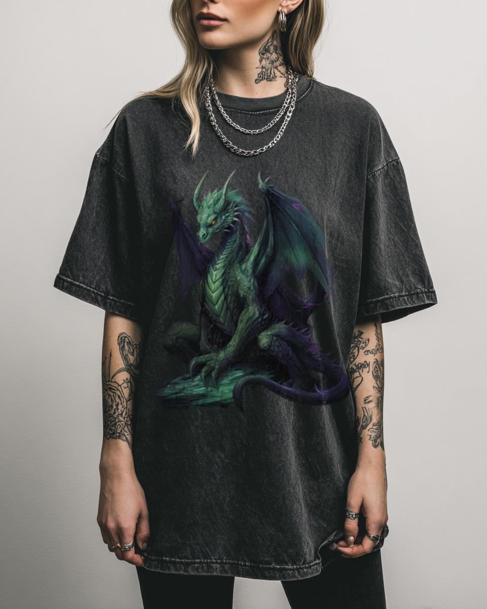 What Makes This Mystical Dragon King Tee So Majestic? Command attention with this ‘Mystical Dragon King’ fantasy graphic tee, featuring a powerful and majestic mythical creature. This black acidwash 100% cotton shirt is an essential piece for dragon lovers, fantasy enthusiasts, and fans of epic mythical art. Features of This Epic Fantasy Dragon T-Shirt: Legendary…