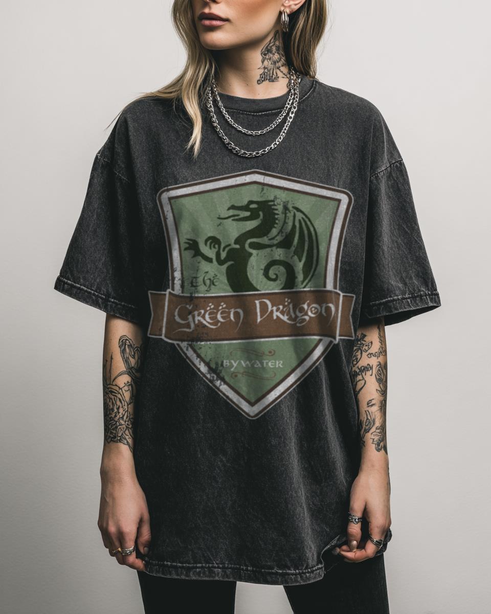 Discover the Charm of The Shire with This Green Dragon Inn T-Shirt? Journey to Middle-earth with this Green Dragon Inn T-Shirt, inspired by the beloved Lord of the Rings saga. Featuring a classic design of the iconic Bywater pub, this black acidwash graphic tee is a must-have for any Tolkien fan. Why This Lord of…
