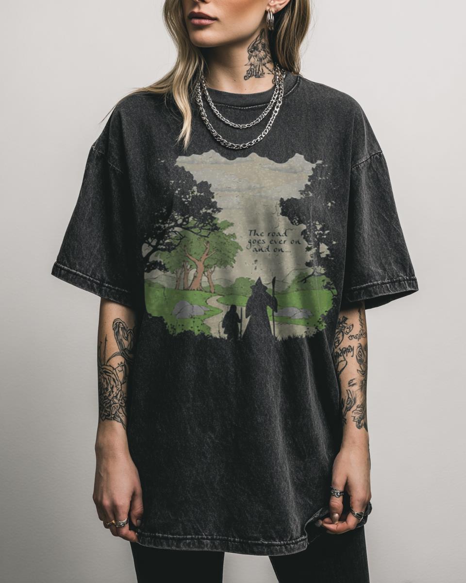 Ready to embark on an epic journey through Middle-earth? Channel the spirit of adventure with ‘The Road Goes’ Lord of the Rings graphic tee. Featuring a design inspired by the enchanting concept art of Tolkien’s world, this shirt is perfect for fans of The Fellowship, Rivendell, and epic fantasy narratives. Why You’ll Love This: Enchanting…
