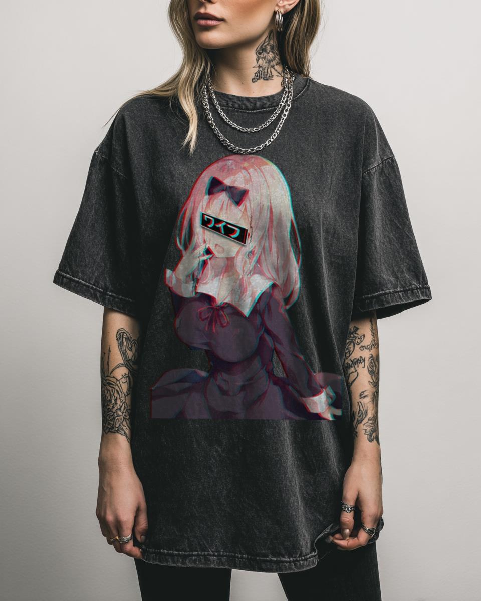 What Makes This Maid Kaguya Love Is War T-Shirt So Charming? Declare your love for the ultimate rom-com with this delightful Maid Kaguya Love Is War T-shirt. Featuring the adorable Kaguya Shinomiya, this black acidwash tee is a charming piece of anime fan art perfect for Kaguya-sama enthusiasts. Why This Kaguya-sama Tee is a Must-Have:…