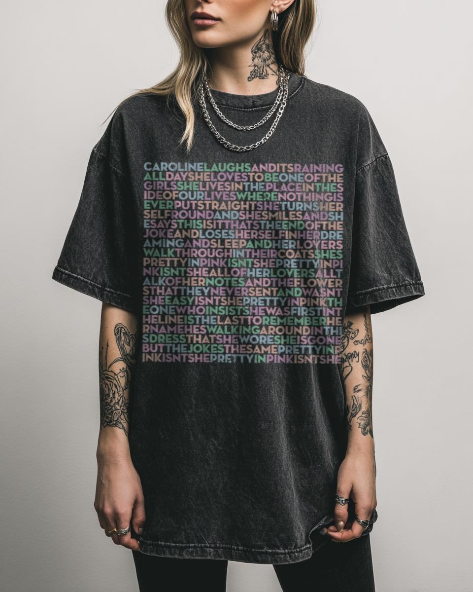 Why This Nick Cave & The Bad Seeds Lyrics Tee is Essential? Immerse yourself in the poetic world of Nick Cave with this **Nick Cave & The Bad Seeds Lyrics Tee**, featuring the iconic line “There She Goes, My Beautiful World.” Made from 100% heavyweight cotton with a distinctive black acidwash, this graphic t-shirt is…