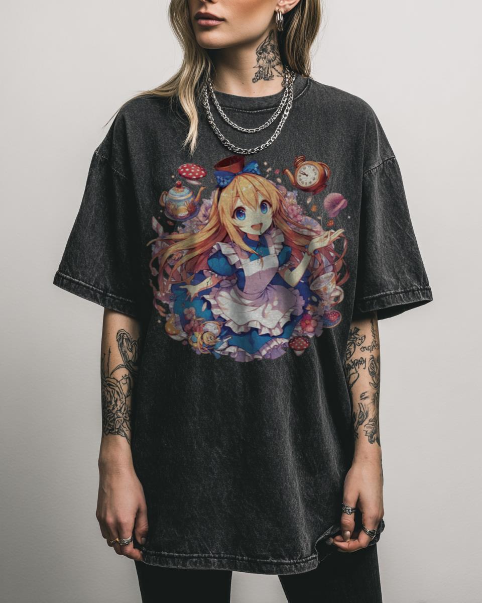 Ready to tumble down the rabbit hole into a truly unique Wonderland? Embark on a fantastical journey with our “Psychedelic Anime Alice in Wonderland” T-shirt! This captivating design reimagines Alice in a vibrant anime style, surrounded by magic mushrooms and elements inspired by the Mad Hatter’s tea party. It’s a whimsical and slightly trippy take…