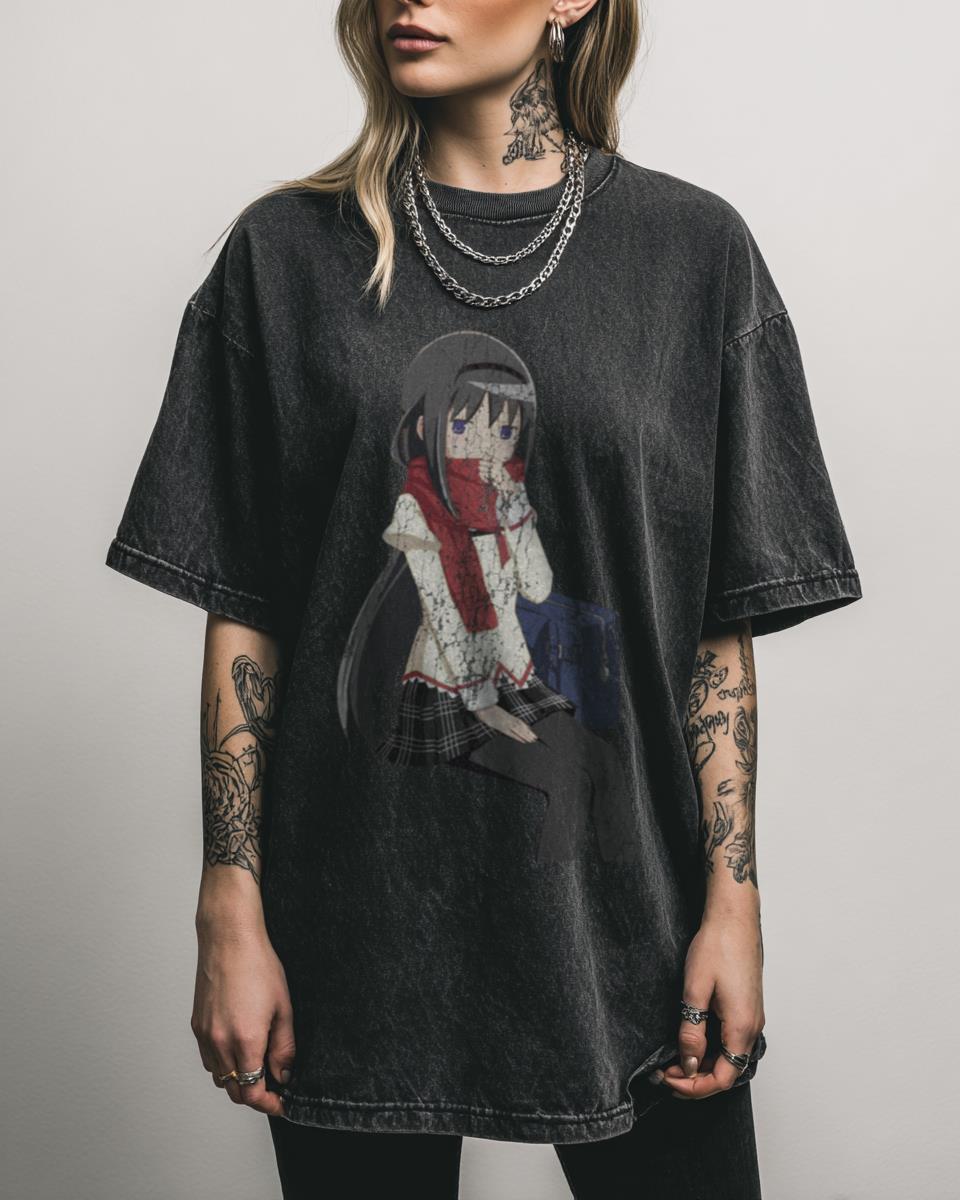 Why is This Homura Akemi Madoka Magica Anime Tee a Fan Essential? Show your devotion to the world of magical girls with this Homura Akemi Madoka Magica graphic t-shirt. Featuring a captivating ‘Scarf Homura’ design inspired by the beloved anime, this black acidwash tee is perfect for fans of Puella Magi Madoka Magica and Japanese…