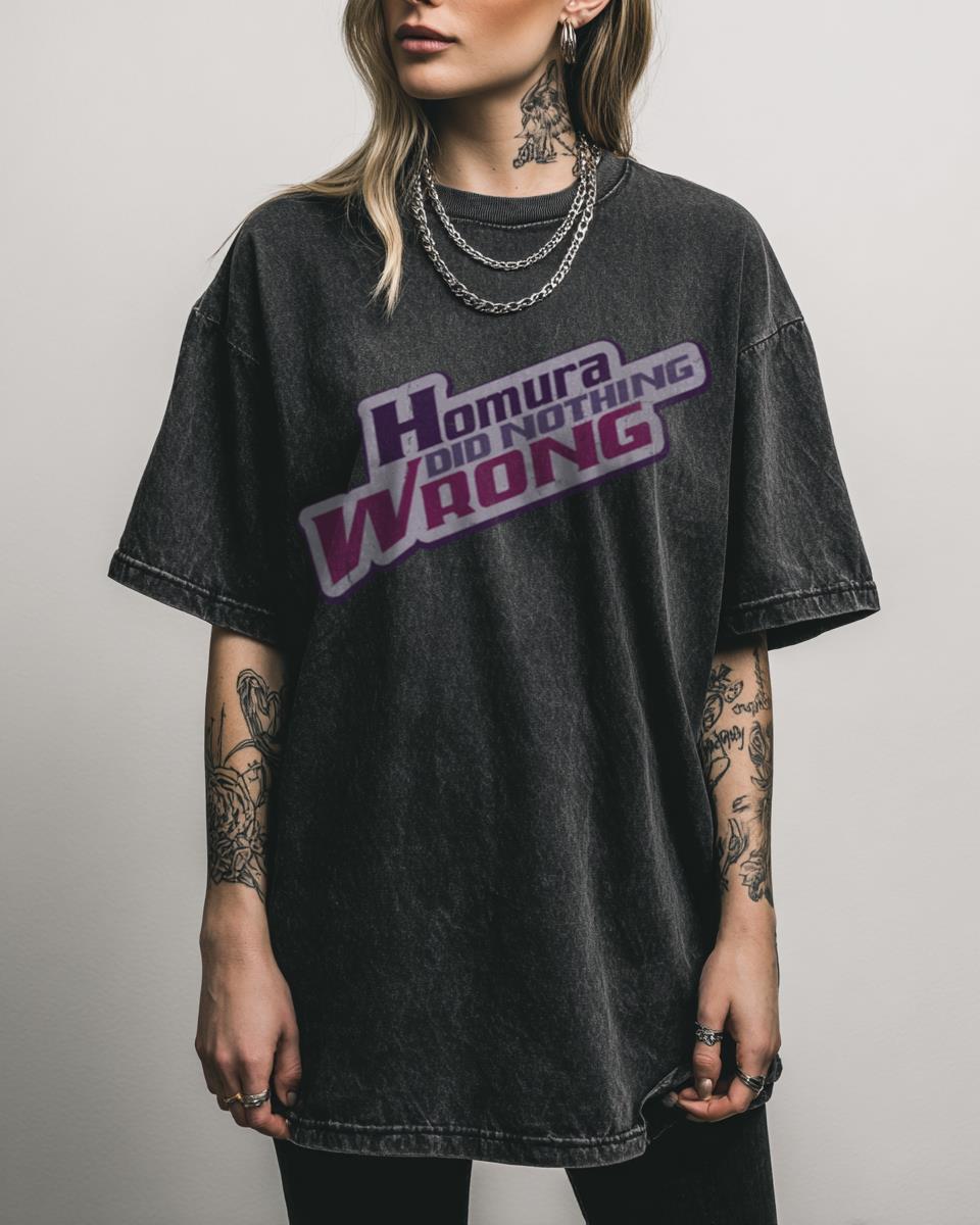 Make Your Stance Known with This Homura Did Nothing Wrong Madoka Magica Tee! Express your unwavering support for the enigmatic magical girl with this Homura Did Nothing Wrong T-shirt, a fan-inspired design from *Puella Magi Madoka Magica*. This anime meme graphic tee on a cool black acidwash background is perfect for any devoted fan who…
