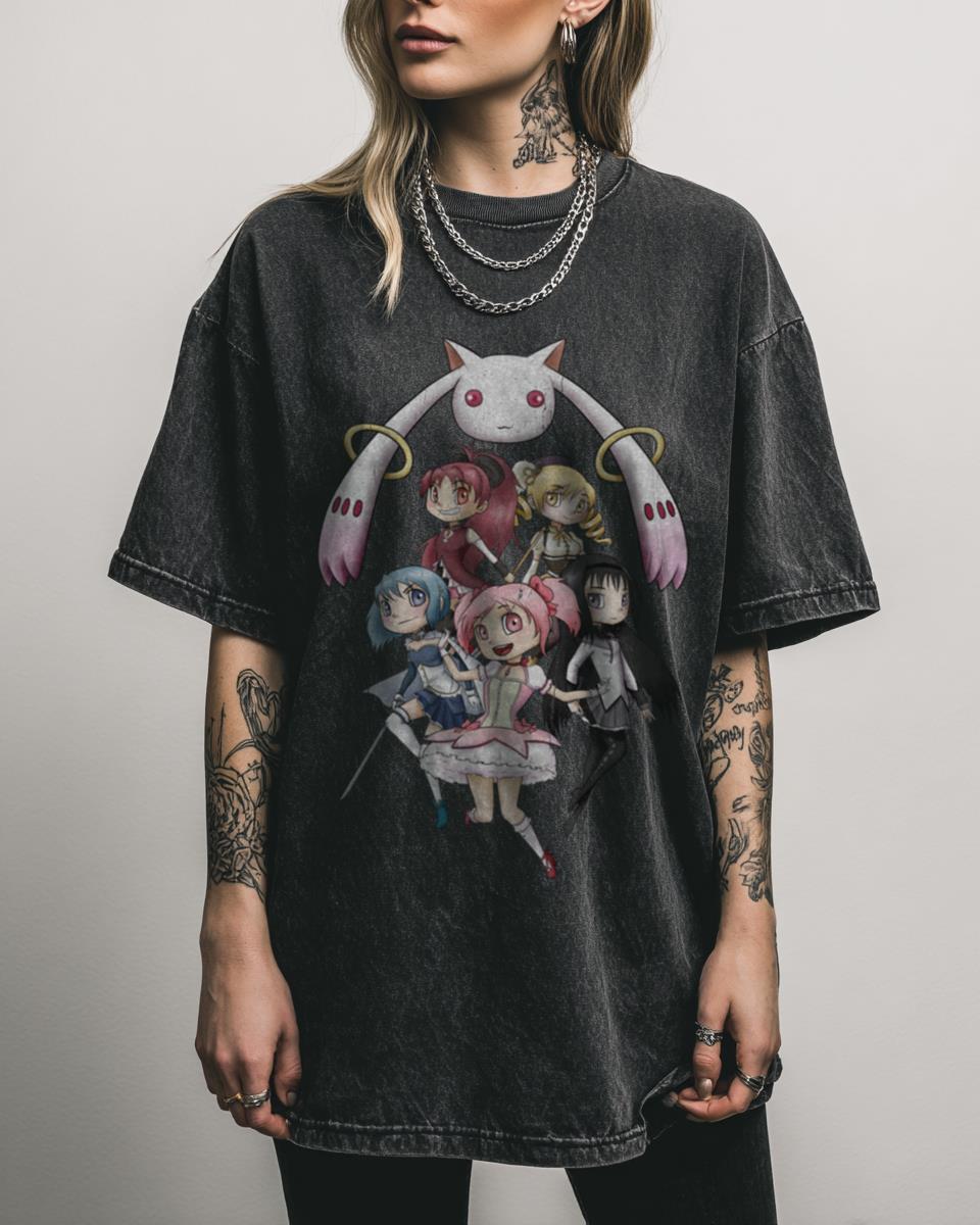 Why This Madoka Magica Anime T-Shirt is a Fan Favorite? Celebrate the compelling world of Madoka Magica with this unique Anime T-Shirt, a fan-inspired design featuring Madoka Kaname and elements from the beloved series. This black acidwash graphic tee is perfect for any fan of Magical Girl anime, complete with characters like Homura and Kyubey….