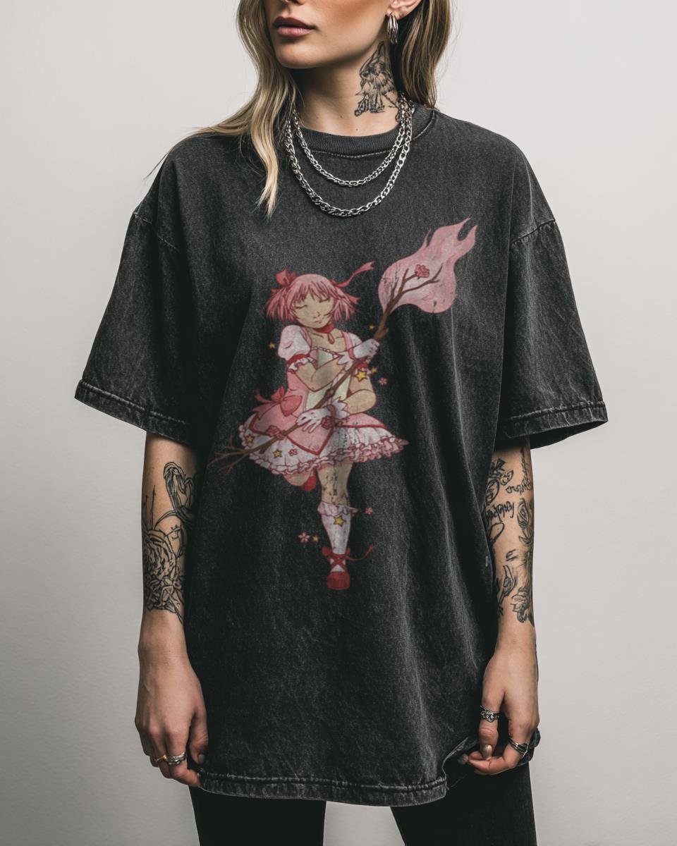 Why This Madoka Magica T-Shirt is Perfect for Magical Girl Fans? Step into the enchanted world with this Madoka Magica Anime T-Shirt, a fan-inspired design celebrating the beloved Magical Girl Madoka. This black acidwash graphic tee is an ideal piece for anyone who cherishes the captivating narrative and aesthetic of Puella Magi Madoka Magica. Key…