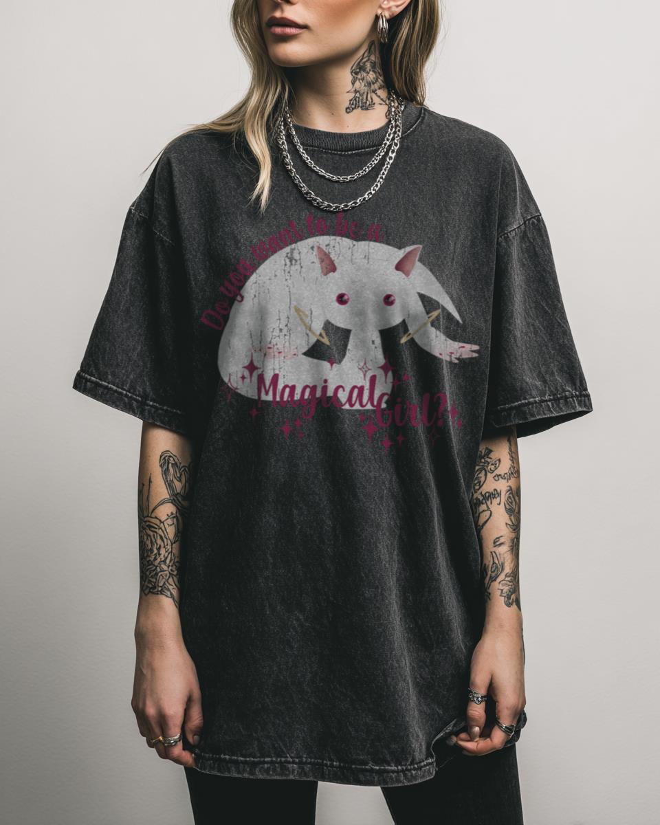 Have you ever been asked the fateful question: ‘Do you want to be a magical girl?’ Embrace the dark whimsy of this ‘Do You Want to Be a Magical Girl?’ graphic tee, a clever nod to the iconic Madoka Magica series. This design features the infamous Kyubey, inviting you into a world of magic and…