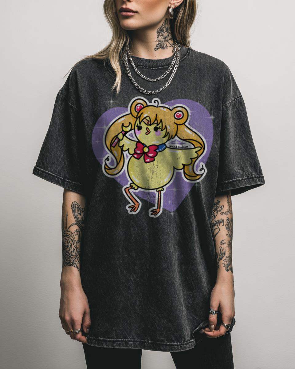 Looking for a uniquely cute and whimsical take on Sailor Moon? Step into a world of magic with this ‘Sailor Moon Chick’ design, a charming and kawaii fan art piece. This animated chicken in a Sailor Moon cosplay costume is a delightful blend of cute and chic, perfect for anime fans who love unique, serene,…
