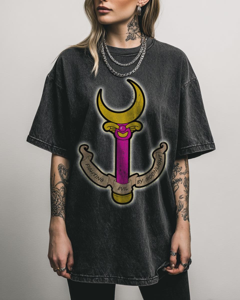 Are you ready to fight evil by moonlight and win love by daylight? Channel your inner magical girl with this ‘Fighting Evil’ design, inspired by the classic anime, Sailor Moon. This cute cartoon tee celebrates the feminist spirit of Usagi Tsukino and her mission to protect the world, perfect for fans of the iconic fandom…
