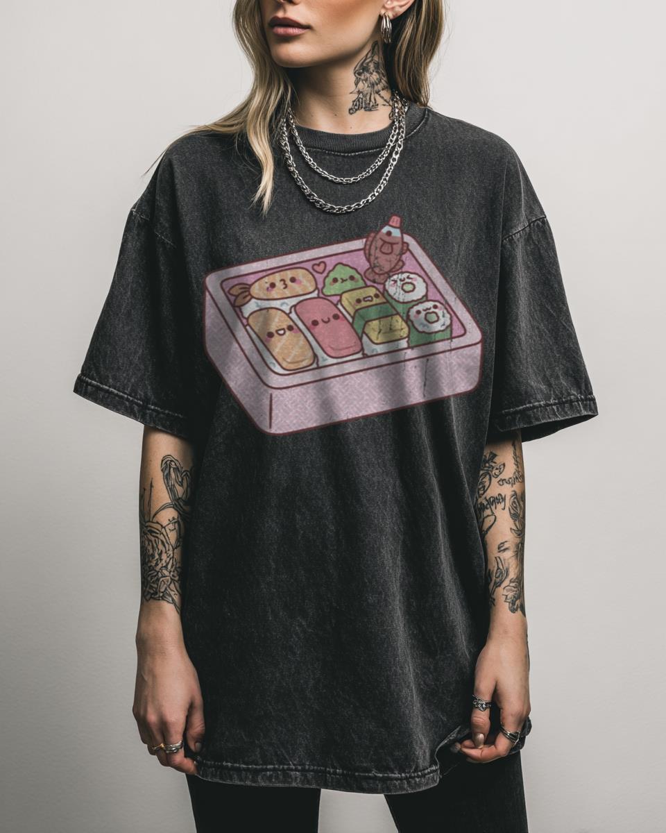 Why is “No Rice No Life” the Perfect Japanese Food T-Shirt? Declare your love for delicious Japanese cuisine with this adorable “No Rice No Life” kawaii T-shirt. Featuring cute graphics of sushi, onigiri, and chopsticks, this black acidwash tee is a must-have for any food enthusiast. Features of This Kawaii Japanese Food Tee: Charming Foodie…
