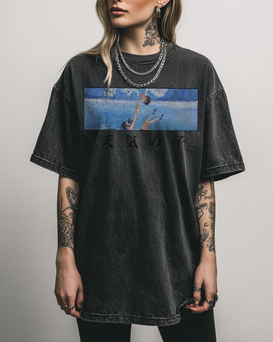 Relive the magic of Makoto Shinkai’s ‘Weathering With You’! This graphic tee proudly displays the official title logo from the critically acclaimed anime movie ‘Weathering With You’ (Tenki No Ko). It’s a minimalist yet powerful design for fans who cherish the beautiful story of Hodaka and Hina and the cinematic artistry of Makoto Shinkai. Why…