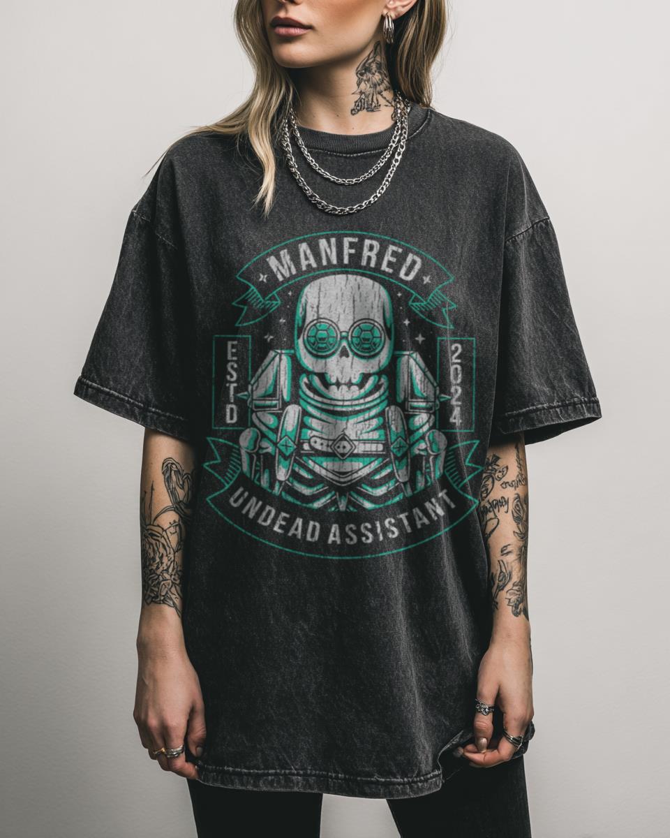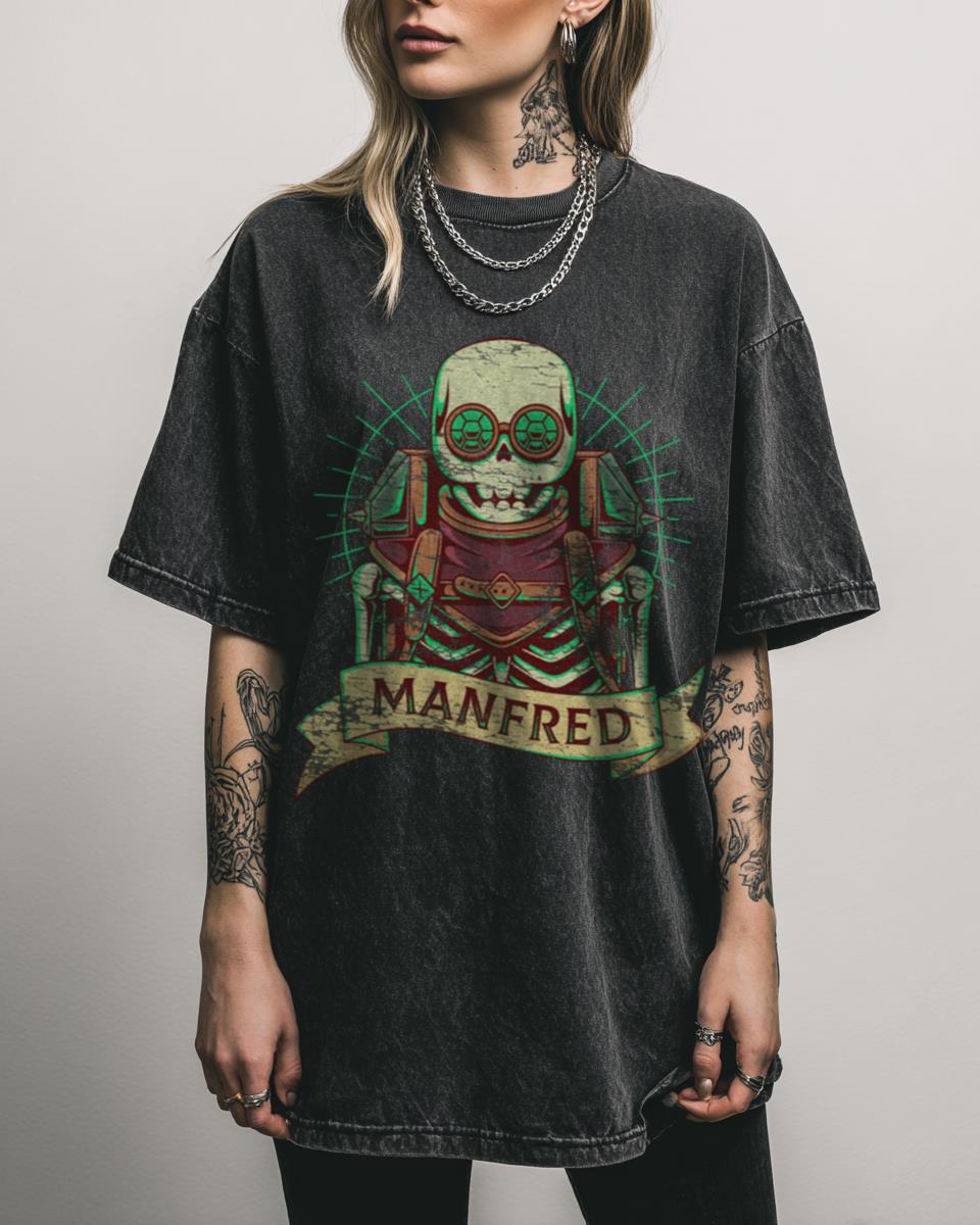 What Makes This Dragon Age Manfred Skeleton Man T-Shirt Unique? Join the ranks of Thedas’s most charming undead with this “Cute Skeleton Man, Manfred Rock Paper Hiss!!” graphic tee. Featuring a fan-created design inspired by the beloved Dragon Age universe, this black acidwash T-shirt is a perfect piece of gaming apparel for any Grey Warden…