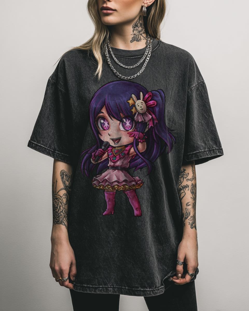 Are you enchanted by the dazzling star of Oshi No Ko, Ai Hoshino? This design celebrates the charismatic idol Ai Hoshino from the popular anime and manga series Oshi No Ko. It captures her iconic charm, making it a perfect piece for fans of Ai, Aqua, Ruby, and the captivating world of idols. Why You’ll…