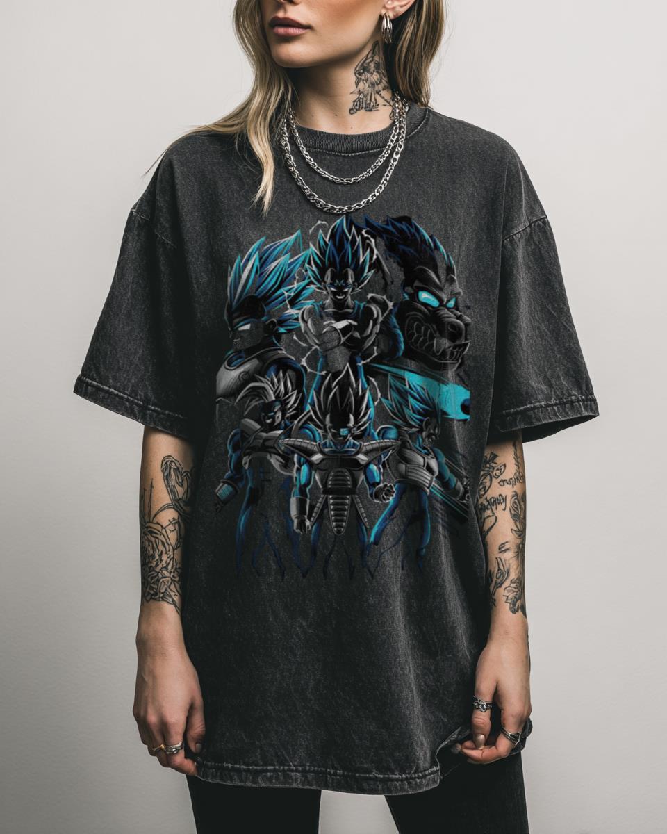 Are you ready to power up with the Prince of all Saiyans? Witness the raw power of Vegeta with this incredible design showcasing all his iconic transformations from Dragon Ball Z. From his early forms to the mighty Super Saiyan Blue, this artwork is a tribute to Vegeta’s relentless pride and his journey to become…
