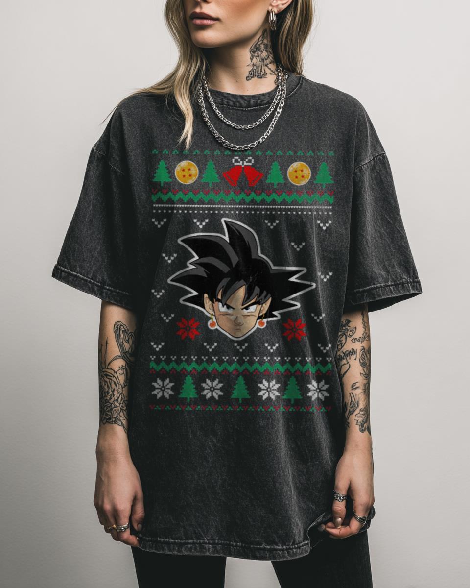 Ready to combine your love for Dragon Ball Z with festive holiday cheer? Get into the holiday spirit Saiyan-style with this vintage Goku Merry Christmas ugly pattern design! Featuring Son Goku in a festive, yet delightfully ‘ugly’ Christmas sweater pattern, this tee is perfect for Dragon Ball Z fans who want to celebrate the season…