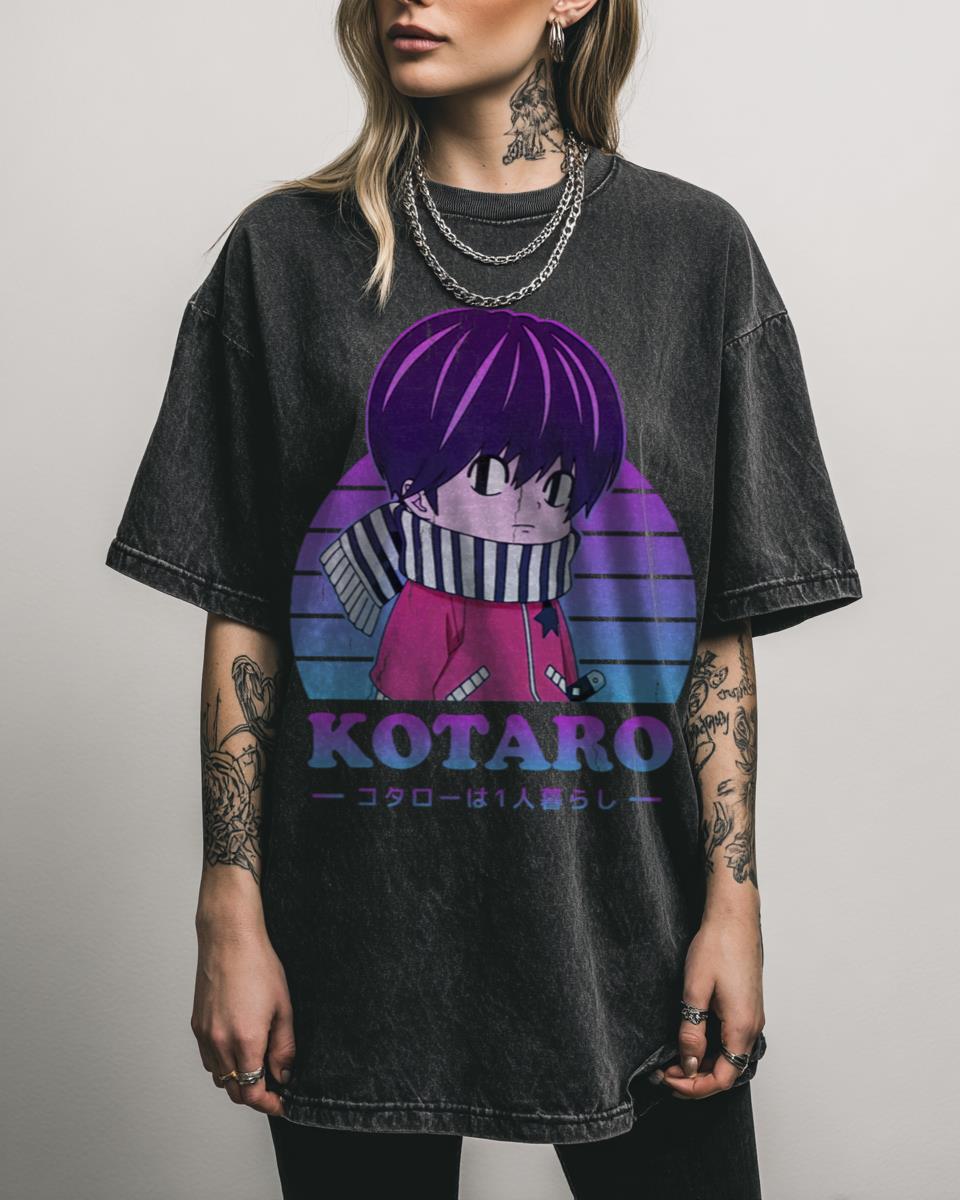 Are you a devoted fan of Kotaro Lives Alone? This adorable design features Chibi Kotaro against a vibrant retro sunset backdrop, perfectly capturing the heartwarming yet poignant essence of the beloved anime and manga series. It’s a sweet homage to the little boy who lives alone, bringing a touch of kawaii and nostalgia to your…