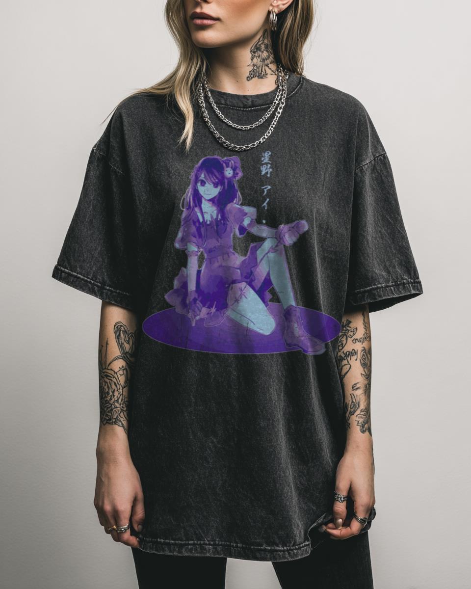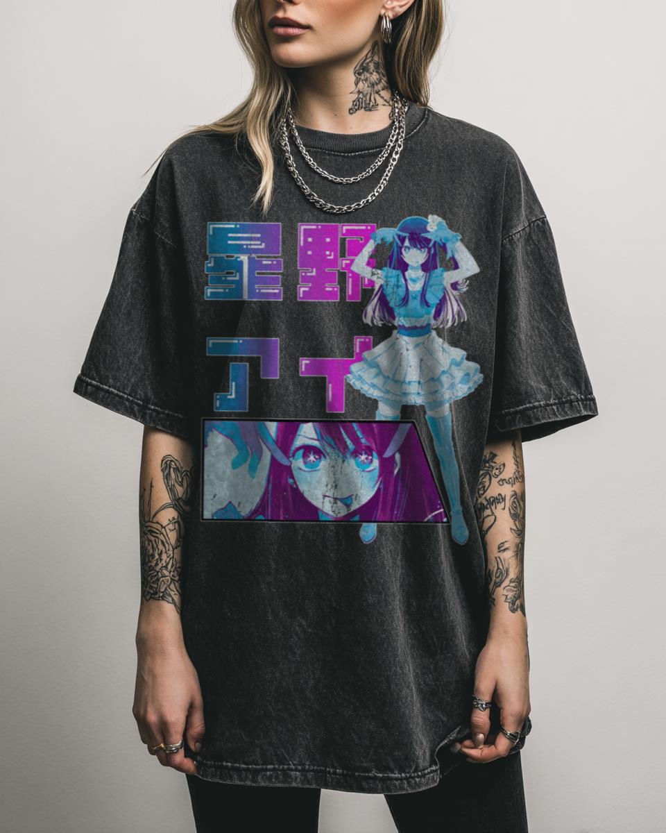 Captivated by the vibrant world and compelling characters of Oshi No Ko? Celebrate the charismatic Ai Hoshino with this ‘Colorful Illustration’ graphic tee, showcasing a high-quality, dynamic portrayal of the beloved idol from Oshi No Ko. This design captures the essence of the popular shounen anime, making it perfect for dedicated fans of Ai, Akane…