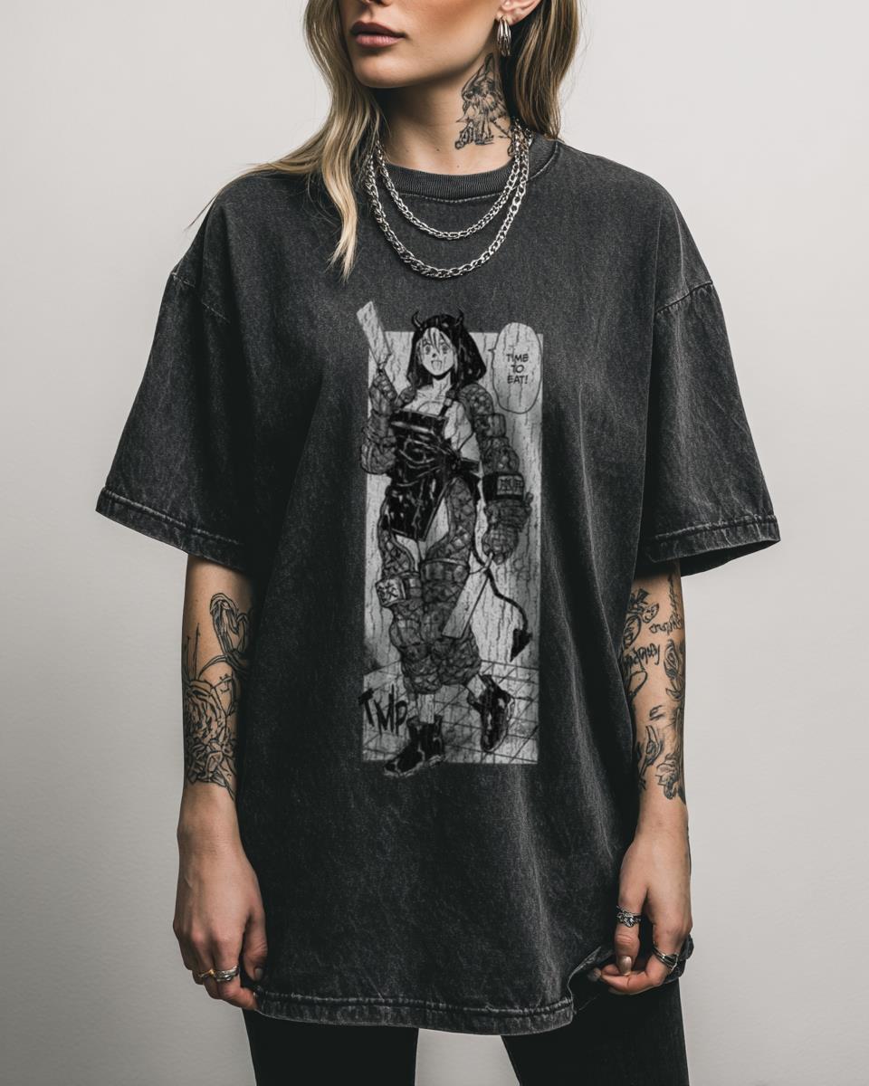 It’s “Time to Eat!” with Our Dorohedoro Nikaido T-Shirt? Indulge your dark fantasy cravings with our Dorohedoro Nikaido T-Shirt! This unique anime tee features Nikaido in her iconic Devil Form, enjoying gyoza in a dynamic manga panel style, perfect for fans of the gritty Dorohedoro series, all on a striking black acidwash background. Why This…
